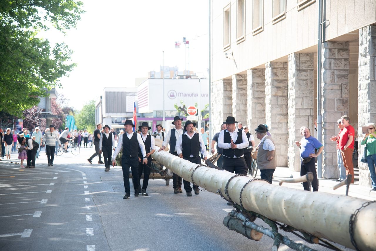Postavljanje mlaja - furenga v Novi Gorici, 2025. Foto: Turistično društvo Nova Gorica..