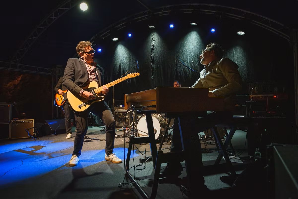 KONCERT ŠTIRIH: Severa Gjurin, Vasko Atanasovski, Dejan Lapanja in Rudi Bučar. Kulturni dom Nova Gorica, 2025. Foto: JERNEJ HUMAR.