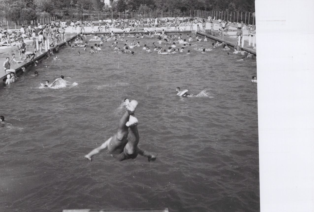 Pot do bazena je bila sicer za Novogoričane dolga, od ruskih blokov je bil bazen oddaljen skoraj dva kilometra oziroma dobrih dvajset minut hoje (Vuga 2018: 131), mnogi pa so se odpeljali s kolesom po Vodovodni ali po kateri koli drugi poti do fabrike. Klape fantov so se zadrževale ob glavni skakalnici na globokem delu bazena, samo moč in pogum pa so preizkušali s skokom “s tavelike” (Marussig 2017).