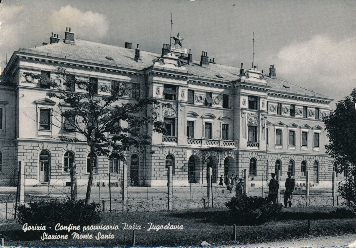 Železniška postaja kmalu po razmejitvi leta 1947, Vir razglednice: Pokrajinski arhiv Nova Gorica.