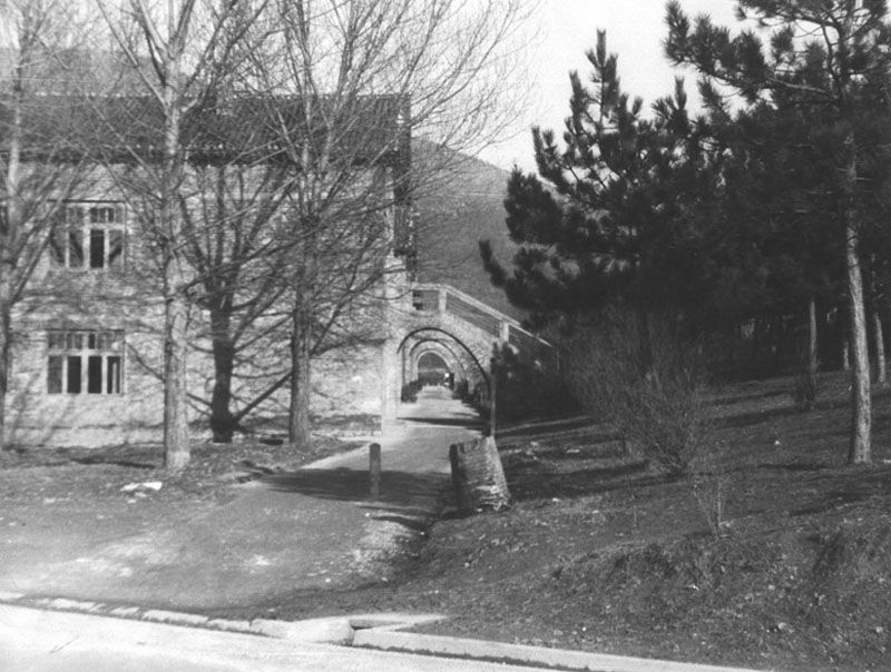 »Naši novi gimnazijski prostori so bili v severnem objektu, ki je bil četrti od štirih, sezidanih s opeko in neometanih, z lesenimi stropniki. /…/ Bolj je spominjalo na leseno barako kot šolo. /…/ Srednja dva objekta sta bila namenjena gimnaziji, južnega pa so spremenili v dijaški dom. V bivših skupnih prostorih delavskega doma so uredili kuhinjo in jedilnico za dijaški dom, večji del pa so namenili telovadnici. Služila je različnim namenom – od dijaških predstav do plesov. Okolica je bila blatna in neurejena«